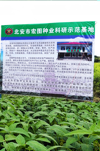 北安市宏圖種業(yè)有限公司是一家及大豆育種研發(fā)、生產(chǎn)加工、銷售于一體的種業(yè)企業(yè) ,成立于2010年6月24日。公司坐落在北方邊陲重鎮(zhèn)北安市趙光鎮(zhèn),公司擁有趙光農(nóng)場、紅星農(nóng)場、建設(shè)農(nóng)場等多家良種繁育基地。得天獨(dú)厚的地理優(yōu)勢為繁育出優(yōu)質(zhì)的大豆種子提供了便利的條件。